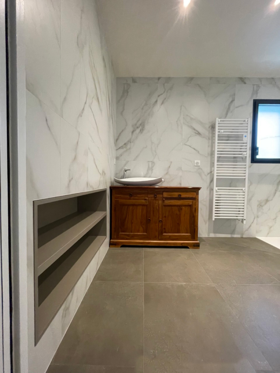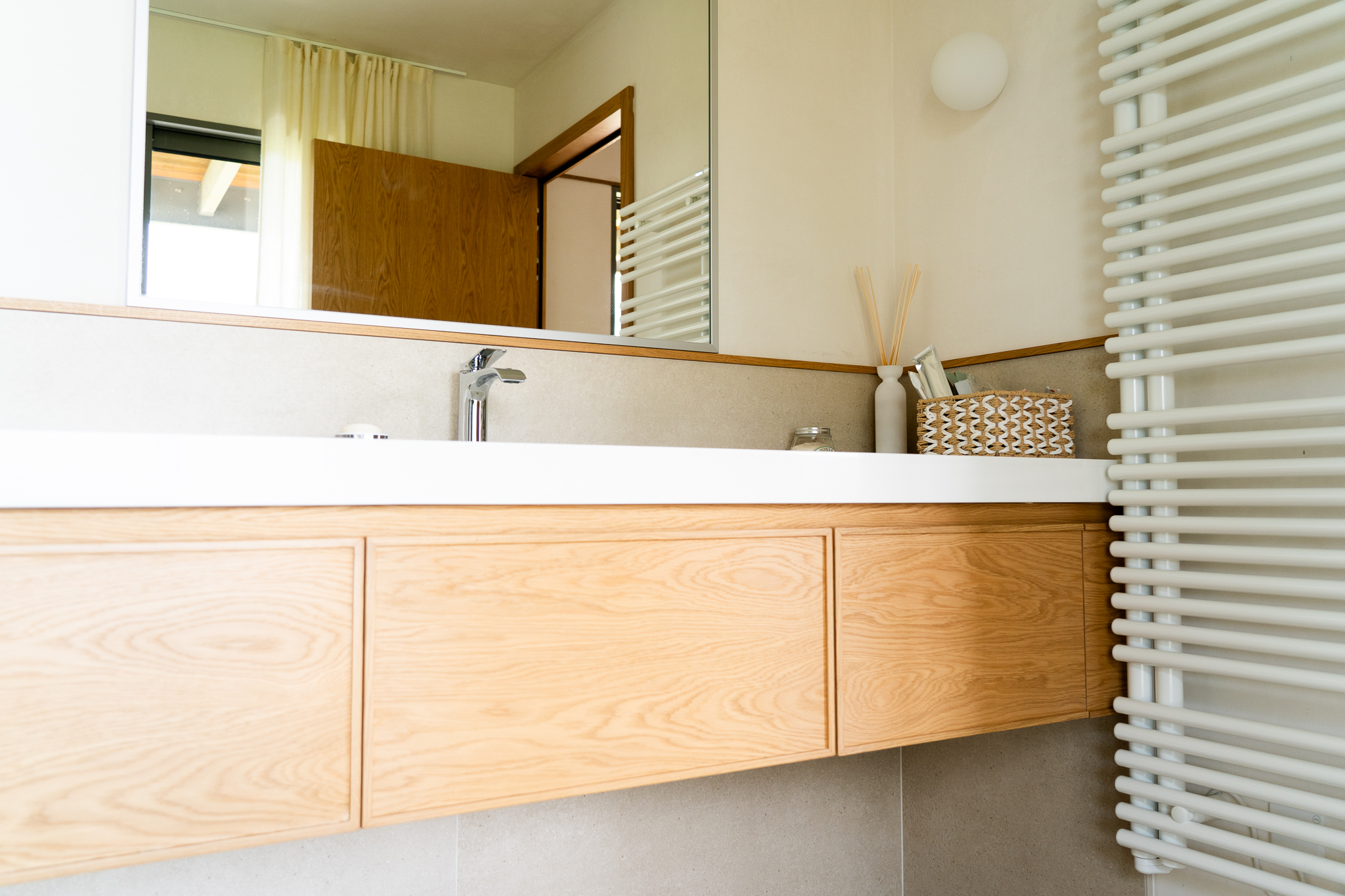 Alliez esthétisme et praticité avec nos meubles de salle de bain sur mesure. Nous concevons des meubles vasques et rangements adaptés aux petits et grands espaces, en utilisant des matériaux résistants comme le Planacryl ou la pierre naturelle.