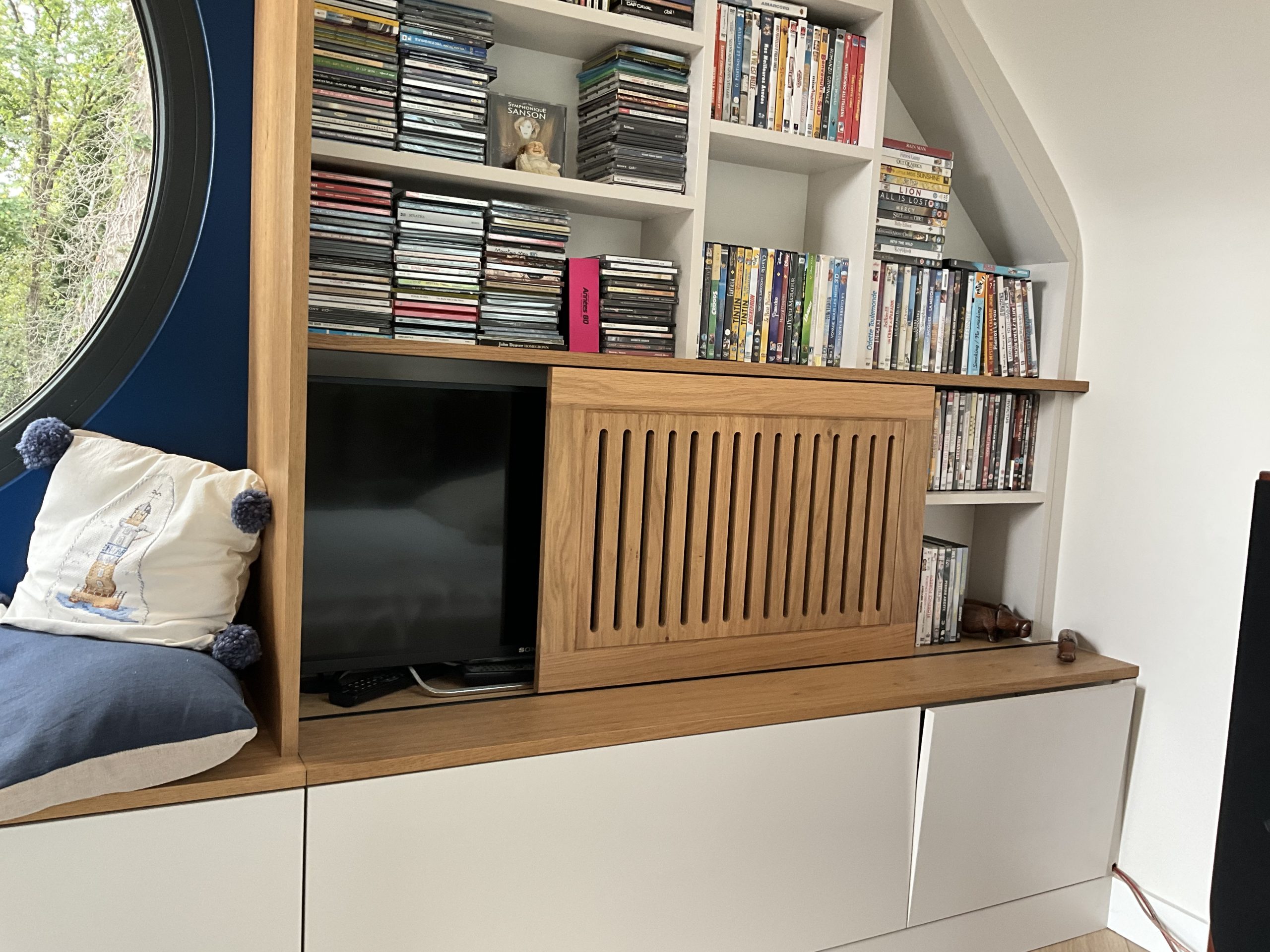Conçus pour s’adapter à votre intérieur, nos meubles TV et bibliothèques sur mesure offrent des rangements discrets et une gestion optimisée des câbles. Nous intégrons également des solutions d’éclairage et des niches adaptées à la taille de vos livres et équipements multimédias.