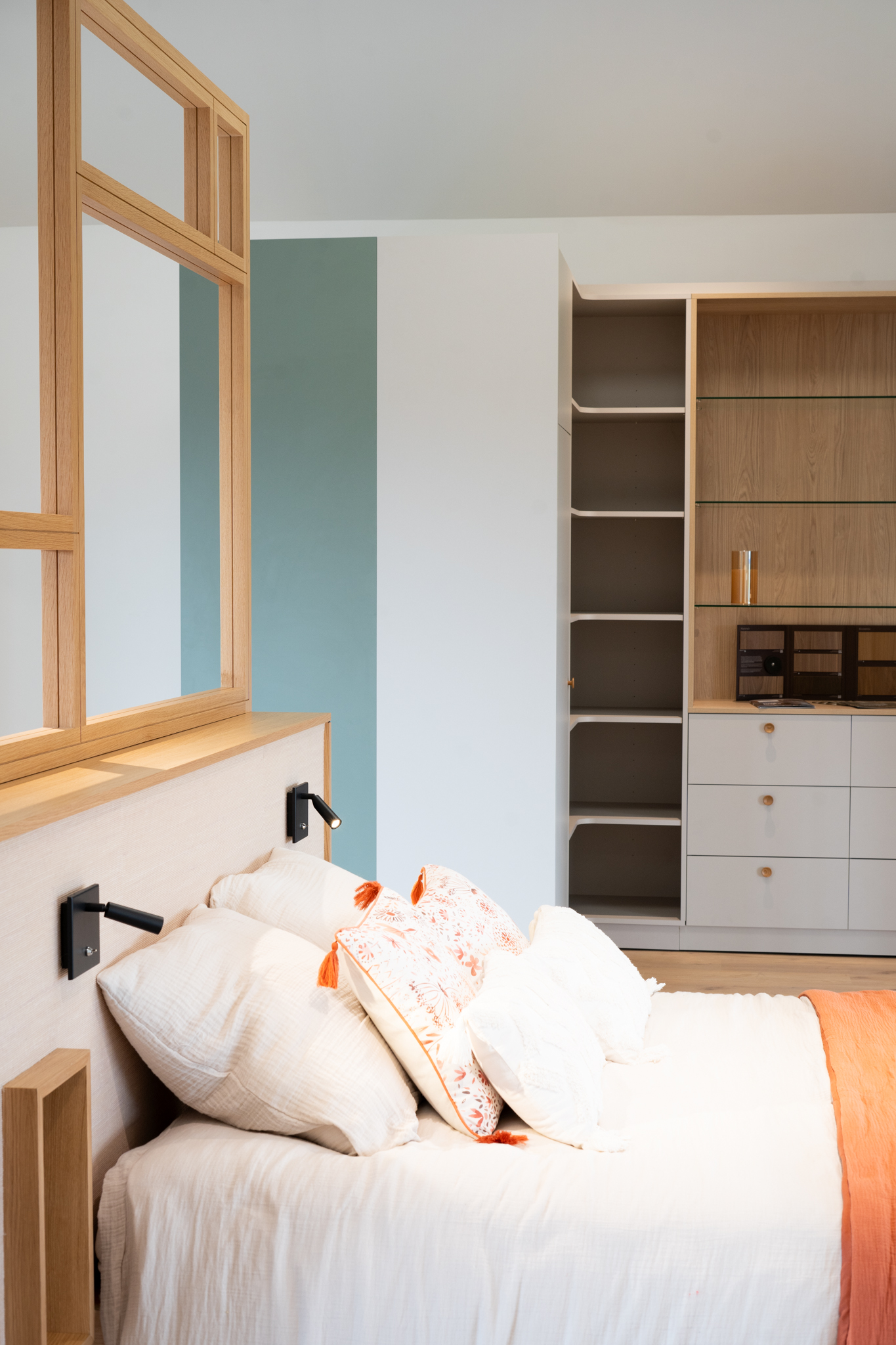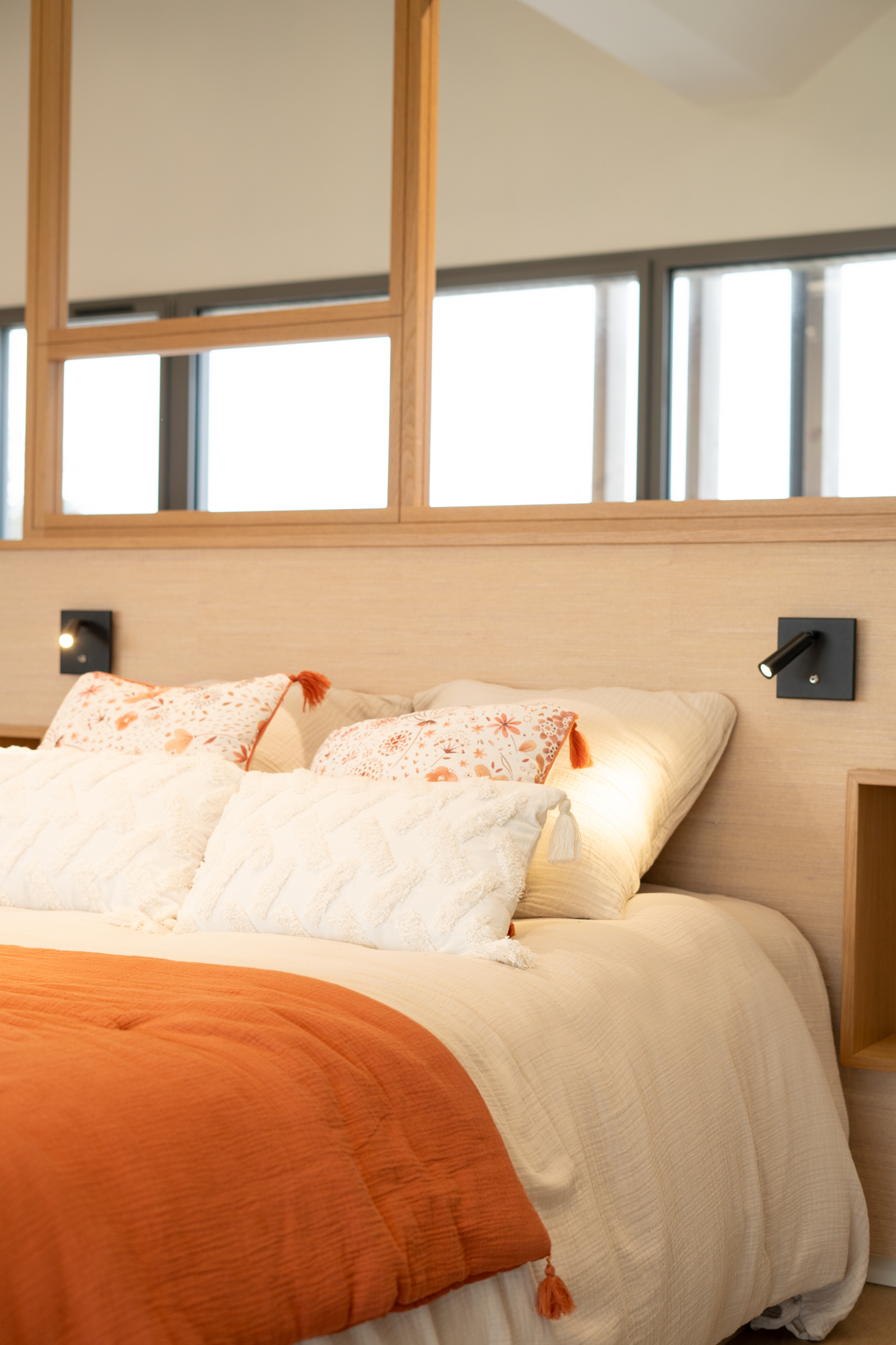Aménagez une chambre harmonieuse et bien pensée grâce à nos têtes de lit, chevets et solutions de rangement adaptées. L’intégration d’éclairages comme des liseuses et des rangements optimisés vous offre un confort maximal tout en sublimant votre espace.