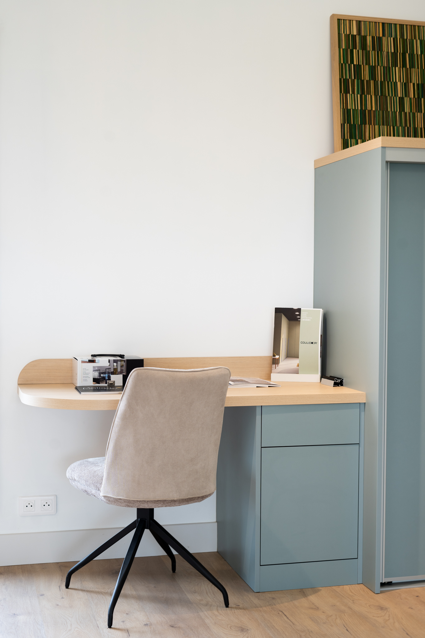 Créez un espace de travail confortable et fonctionnel avec nos bureaux sur mesure. Nous allions esthétisme et praticité en intégrant des matériaux de qualité, des solutions de rangement intelligentes et des équipements modernes comme des prises et ports USB intégrés.